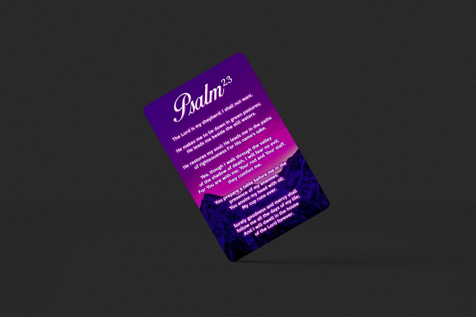 Psalm 23 is a tender Psalm that bursts with joy, peace and reassurance that Jesus is with us wherever we go. This was a Psalm of King David, who portrays God as a Shepherd. Let this Bible Card be a daily reminder of how gracious God is on our lives and how He protects us. This is a lovely gift that someone who has Psalm 23 as one of their favourite psalm would like to receive!