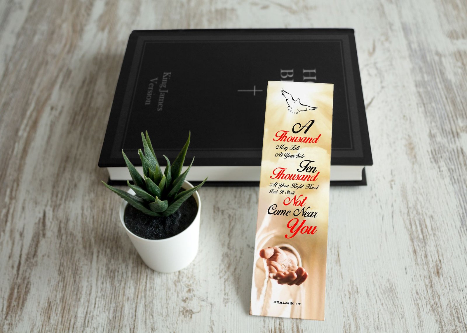 A very powerful Bible verse that gives us that reassurance that God won’t let anything against His will harm us. This Bible verse speaks power and Might of the Lord and how well protected you are with Him. A beautiful visionary bookmark that shows Jesus, reminding you ‘He will never leave you no forsake you’.